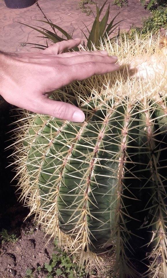 Después salí con el a la calle, hacia mucho calor dentro, y fuera había un cielo hermosamente negro y estrellado. Le mostré precioso lugar, y estuvimos hablando sobre sus impresiones de la fiesta. Llegamos a un cactus grande y yo le digo “cierra los ojos, y confía en mi”, el sabe que voy a guiarle la mano hacia el cactus, le pongo la mano encima de los cactus pero cogiendo la mano por un pellizco superior, me agacho, y veo como las puntas rozan la palma de su mano. Y le mastico la metáfora, “si te dejas guiar por mi, te pida lo que te pida, siempre vas a estar seguro”. Le abracé y entramos dentro de nuevo.